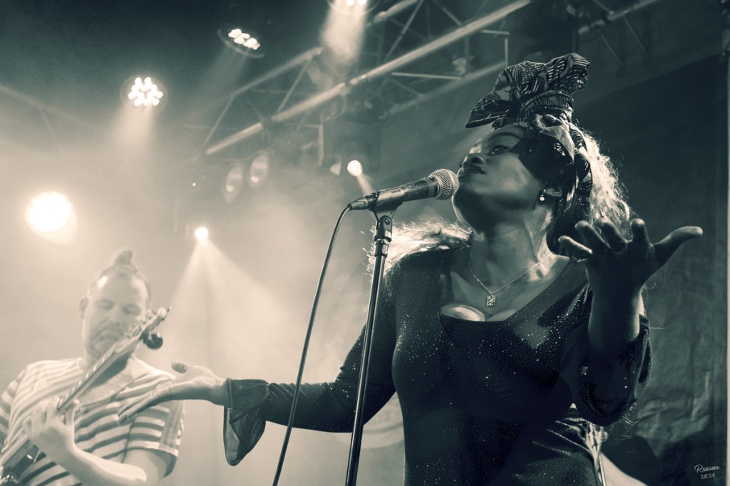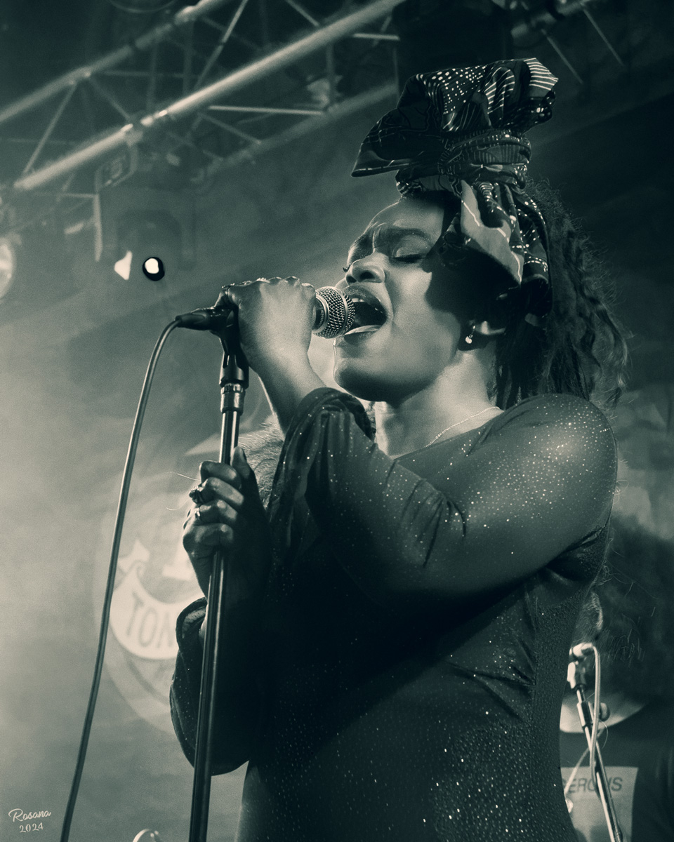 Ubicada en el corazón de Valencia, la Sala 16 Toneladas es conocida por su buena programación musical. Este espacio fue el escenario perfecto para un grupo como LAC, cuya música de raíces africanas se mezcla con el funk, jazz y rock. Fotografiar a una banda como London Afrobeat Collective es una experiencia desafiante y gratificante. La música enérgica y el dinamismo constante de sus miembros exigen una gran capacidad para anticipar momentos y capturar la acción en el instante preciso. La esencia de la fotografía de conciertos va más allá de congelar un momento; se trata de capturar la esencia de los artistas y la energía que transmiten a la audiencia. Los integrantes de LAC liderados por la cantante congoleña Juanita Euka en la voz, transmiten una intensidad contagiosa y un ritmo que parece fluir desde el escenario hacia el público, logrando una simbiosis perfecta. En cada toma, busqué reflejar ese vínculo y resaltar el papel de cada miembro en la creación del sonido colectivo.