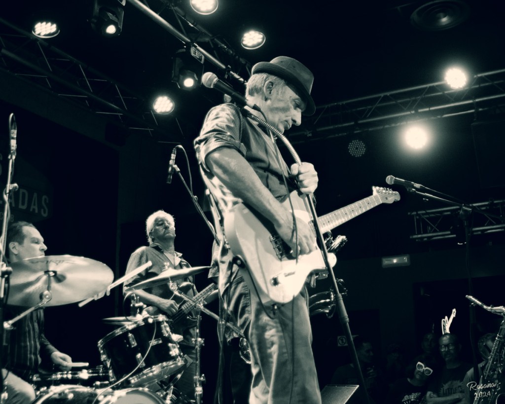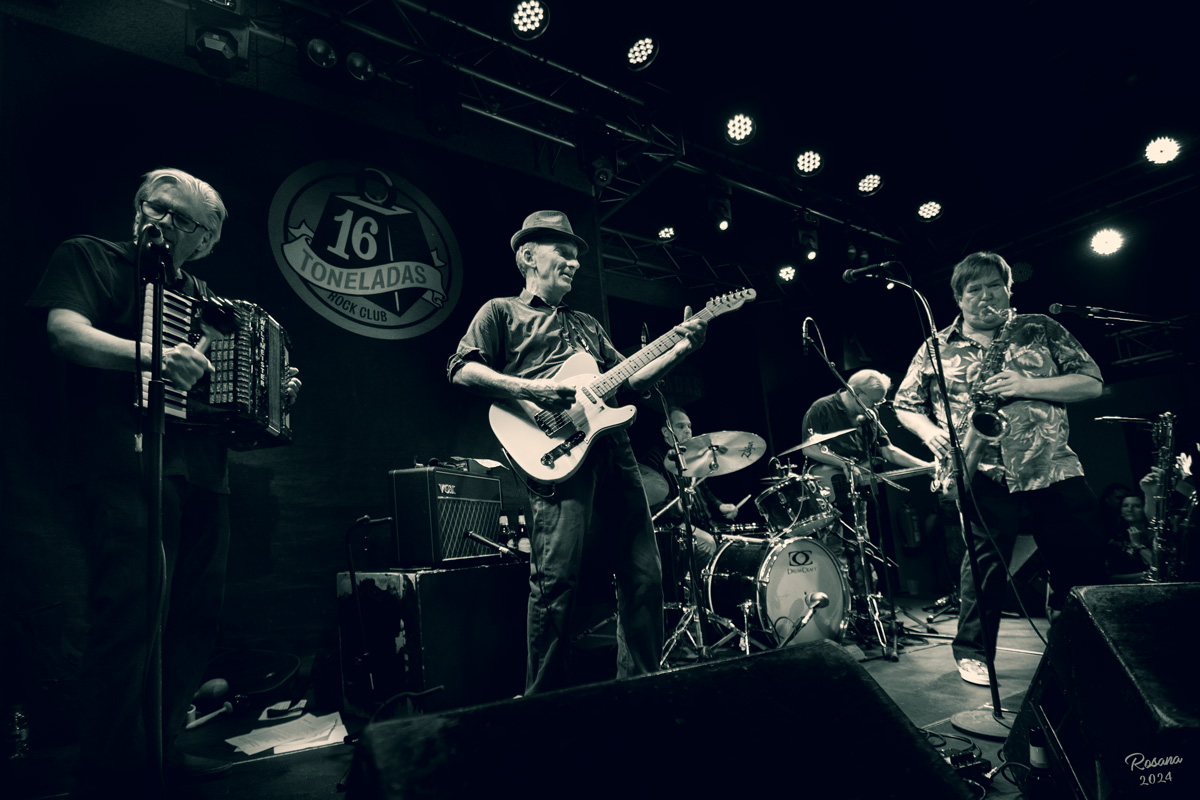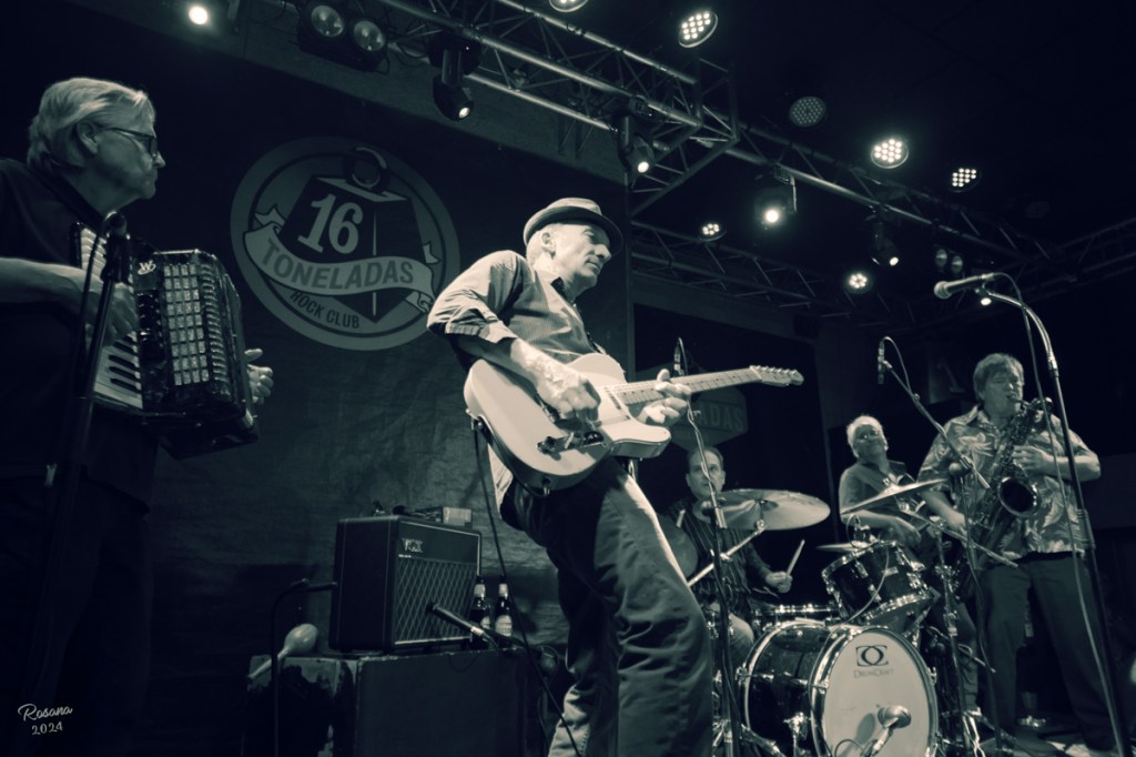 El reciente concierto de Ben Vaughn Quintet en la sala 16 Toneladas fue una noche inolvidable de pura energía musical y una fiesta visual para cualquier amante de la fotografía de conciertos. Vaughn y su quinteto, que poseen una habilidad impresionante para fusionar géneros como rockabilly, country y rhythm and blues, ofrecieron un espectáculo que combinaba lo clásico y lo contemporáneo. El carácter de la sala 16 Toneladas hicieron de cada momento una oportunidad visual única. A diferencia de los grandes escenarios, esta sala de estilo industrial permite una conexión más cercana entre el artista y el público, en este concierto tuve la oportunidad de ver a Ben Vaughn a la guitarra con una energía escénica cautivadora; capturar sus gestos y expresiones dinámicas realza la historia detrás de cada imagen y la conexión con el público.