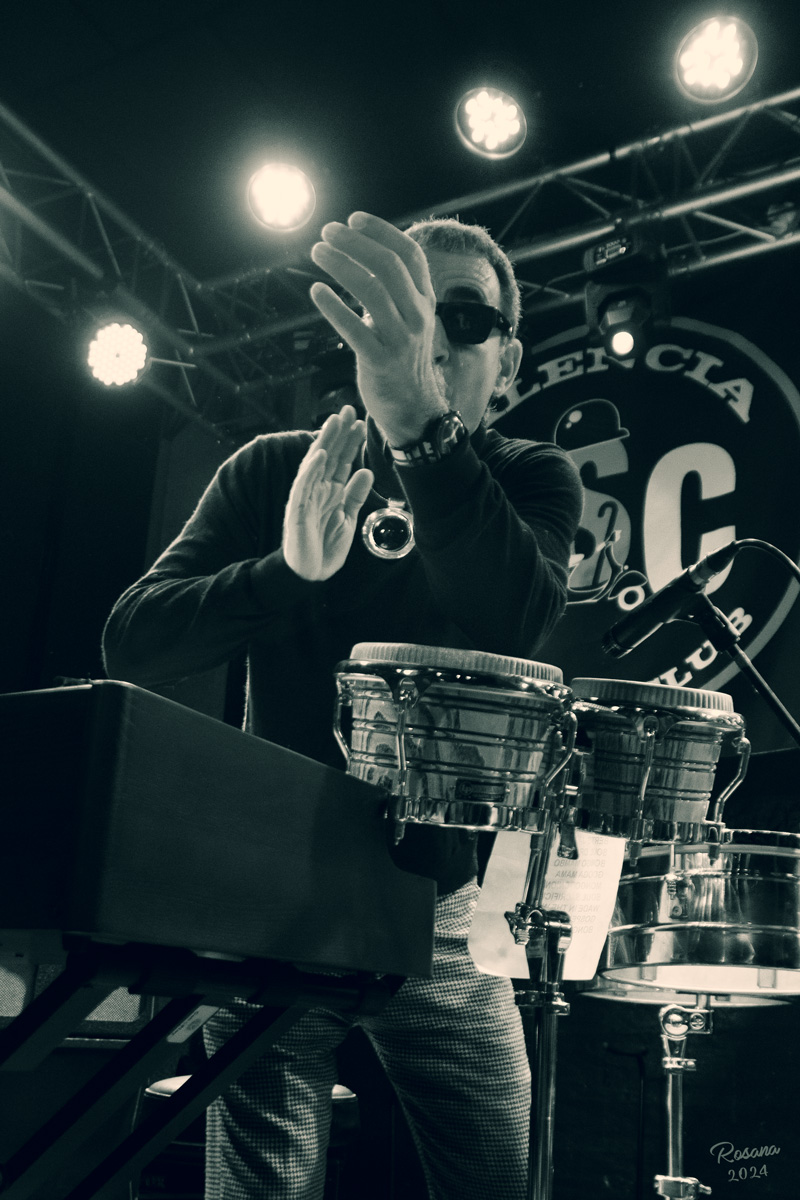 Nada más empezar el concierto, el carismático líder de la banda, Nasser Bouzida, nos llevó de inmediato a un viaje sonoro con su magistral manejo de los bongos y el teclado. Acompañado de una alineación de músicos de primer nivel, The Bongolian ofreció una experiencia que combina ritmos vertiginosos y melodías hipnóticas, logrando captar la atención desde el primer compás. Para los amantes de la música en vivo y la fotografía de conciertos, esta fue una noche irrepetible.
