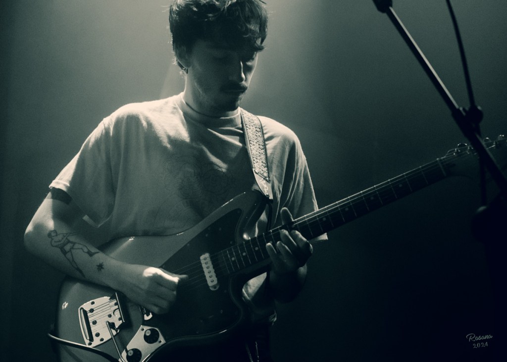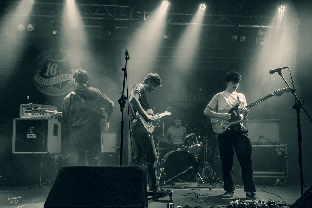 Fotos del pasado 20 de octubre en la sala 16 Toneladas viendo a unos jovenzuelos Corredor, el nombre del grupo es una metáfora del estilo de vida de su generación. La banda está formada por Erick Marin al bajo, Iván Sanantón en la guitarra, Jerónimo Martínez a la batería y Victor Navarro en la guitarra. Son conocidos por su energía y letras cargadas de intensidad emocional que hablan de la ciudad y del vivir rápido, su sonido va del punk, postpunk al noise pop. Tienen publicado un primer EP en formato cassette editado por Flexidiscos, el cual sonó en un concierto lleno de fuerza y riffs potentes. En tema de fotografía muchísimo humo en la sala, lo que dificulta el enfocar, todo un reto.