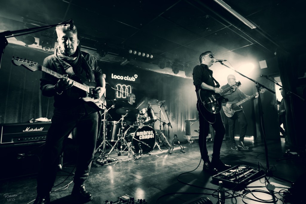 Después de Ana Béjar, fue el turno de Ambros Chapel, una banda ya consolidada en el panorama valenciano y que nunca deja de sorprender formados por Pablo Casero, Edu de Eduardo, Alfred Sanchis, Óscar Vadillo, José Rodríguez. Su mezcla de rock alternativo con tintes oscuros y melancólicos llenó la sala con una energía envolvente. La precisión instrumental y la intensidad emocional de su estilo de música crearon momentos de auténtica conexión con el público. Temas como Lovers del album Rome o New Romance que da titulo a su último disco brillaron especialmente, mostrando su habilidad para combinar melodías con una gran profundidad vocal.