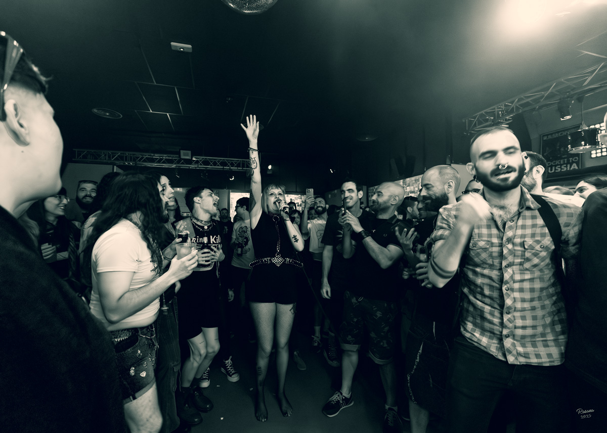Aquí van algunas fotos que cliqué y que capturan la esencia del show: sudor, látex y provocación a la hora del aperitivo.