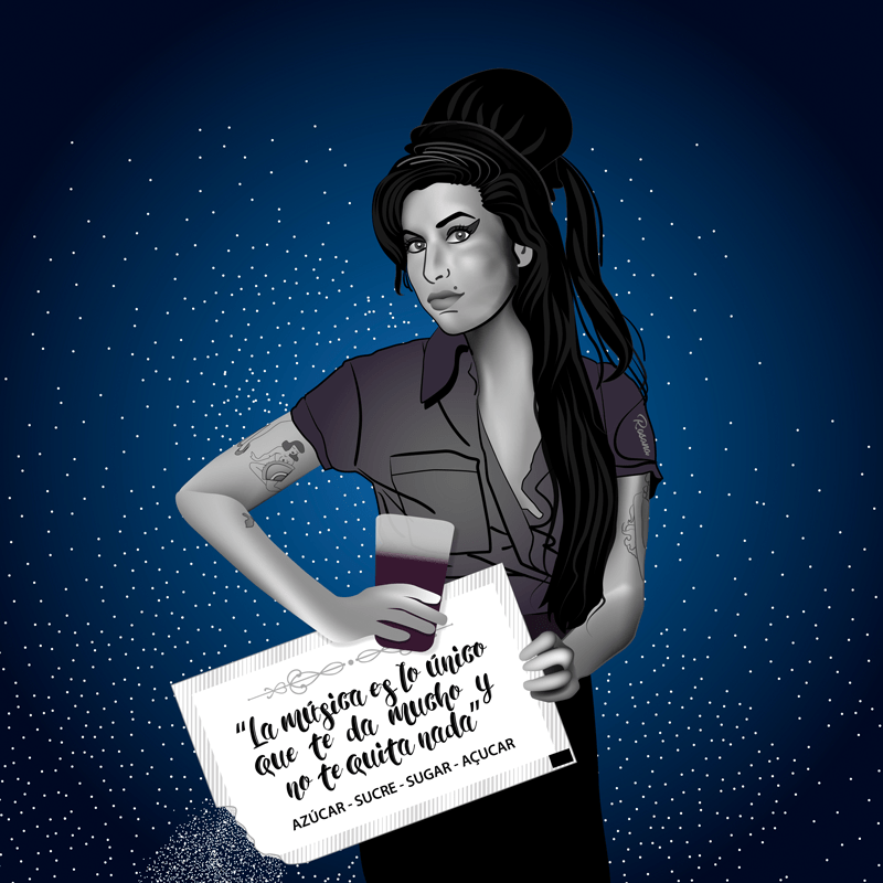 Este fin de semana estuvo Amy Winehouse por casa y me aconsejó que el azúcar está mejor en el kalimotxo que en el café y que su disco Back to Black suena muchísimo mejor en vinilo que en el spoty. Al final hubo fiestecita y azúcar por todas partes.