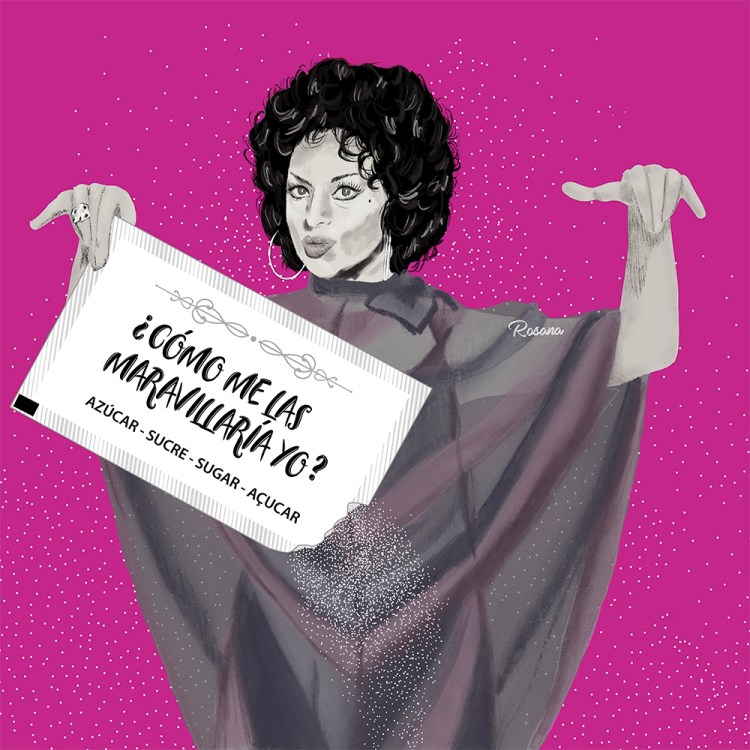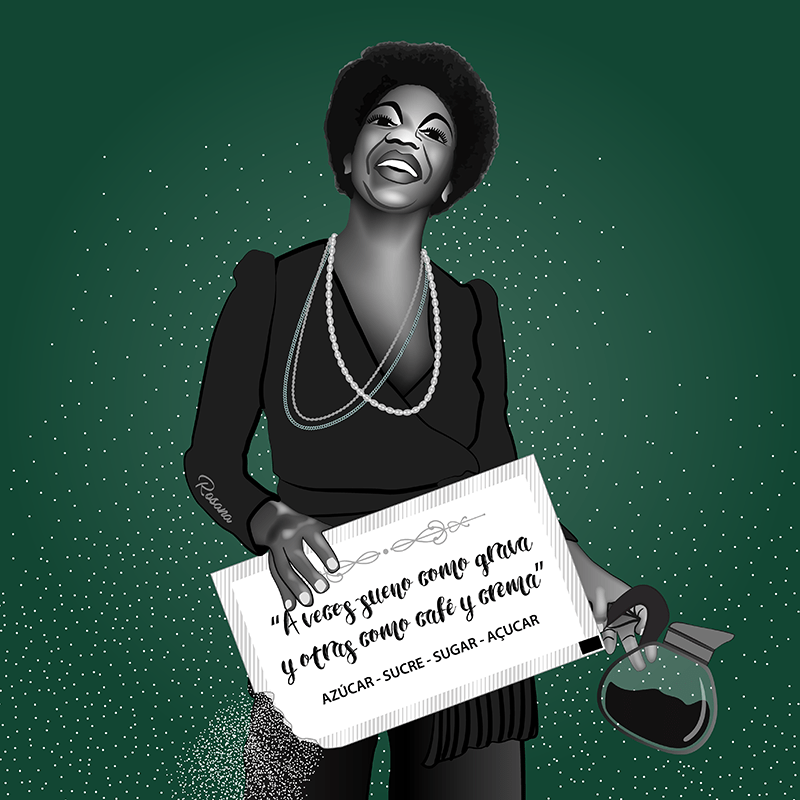 Hoy ha venido a tomar café a casa Celia Cruz ¡ y me lo ha puesto todo perdido de ¡azuucaaarr!
